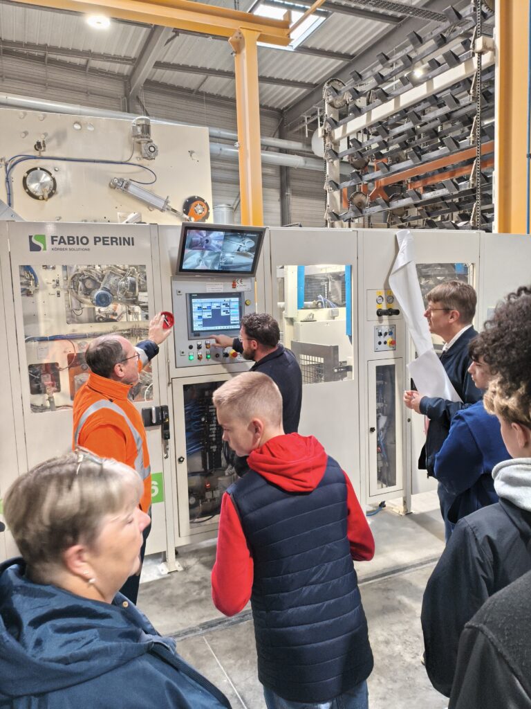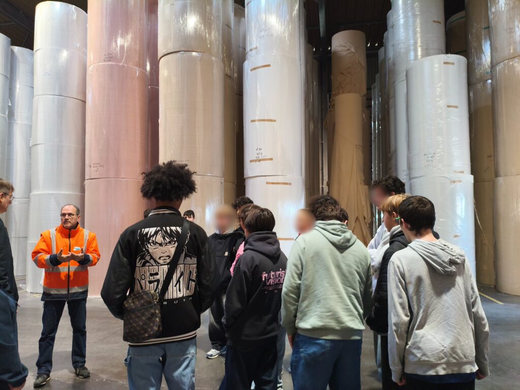 La première étape les a conduits à Orval, dans l’entreprise Papeco, papetier industriel local. Les 17 élèves y ont découvert le processus complet de fabrication du papier, de la matière première au produit fini, en lien direct avec leur formation sur les procédés automatisés et la maintenance industrielle.